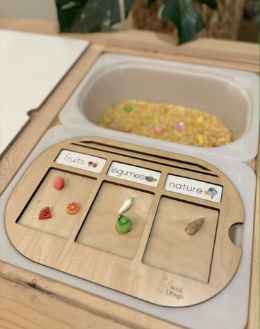 Saviez-vous que tous les plateaux sont fabriqués pour aller dans les bacs TROFAST d'IKEA? Il est toutefois possible de les adapter pour aller dans les bacs de la table pastel de la compagnie BAJOUE.