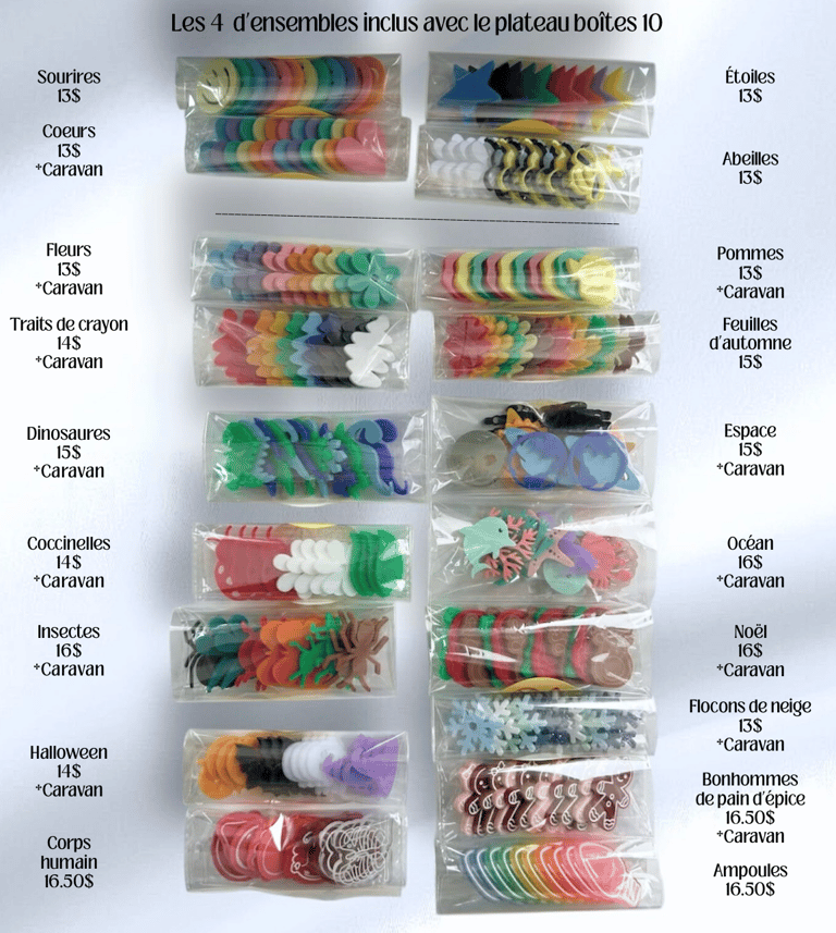 Ensembles de jetons pour le plateau boîtes 10 13 à 16.50$
