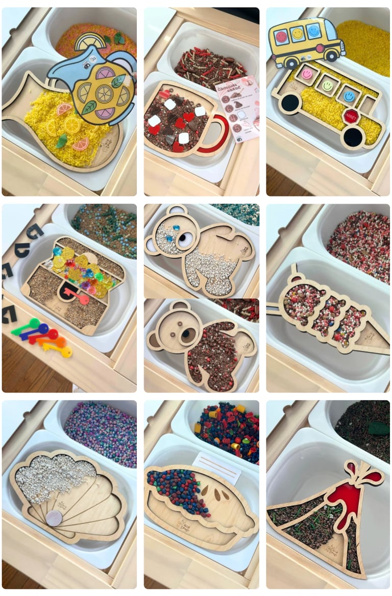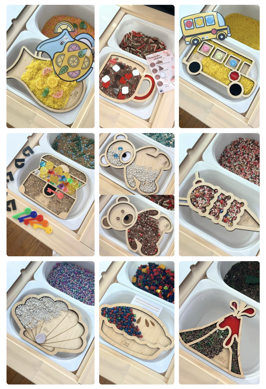 Voici les 9 nouveaux plateaux de remplissage! Ils sont tous faits pour entrer sur le petit bac Trofast. Certains ont des fiches disponibles sur le groupe de Caravan (limonade, chocolat chaud, autobus, coffre, crème glacée, coquillage et tarte).